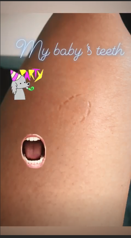 Συγκεκριμένα, η Σταματίνα Τσιμτσιλή δημοσίευσε μία φωτογραφία από το σημάδι που ο μικρός της γιος άφησε στο πόδι της και έγραψε χαρακτηριστικά: «My baby’s teeth (Τα δοντάκια του μωρού μου)».