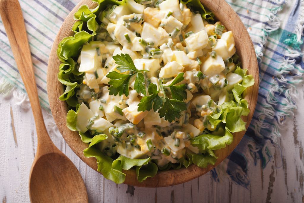 Βάλτε τα αυγά σε μία κατσαρόλα με μπόλικο νερό μέχρι να βράσουν και να σφίξουν. Αφού κρυώσουν, καθαρίστε τα και κόψτε τα σε μικρά κομματάκια. Ψιλοκόψτε το σέλερι και το κρεμμυδάκι. Τρίψτε την φέτα έπειτα με το χέρι. Σε ένα μπολ προσθέστε όλα τα υλικά και ανακατέψτε καλά. Μπορείτε να σερβίρετε αμέσως ή να αφήσετε τη σαλάτα σας για λίγο στο ψυγείο για να την απολαύσετε δροσερή.