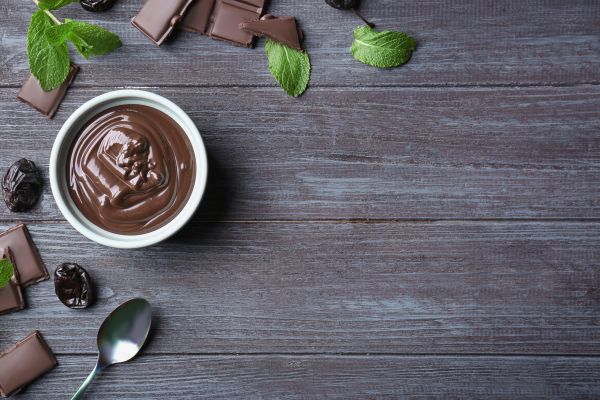 Λιώστε την κουβερτούρα μαζί με το γάλα σε ένα κατσαρολάκι. Σπάστε τα μπισκότα σε μικρά κομματάκια και αναμείξτε τα με τους κρόκους και το κορν φλάουερ. Στη συνέχεια, ανακατεύοντας διαρκώς, προσθέστε τα στο μείγμα της κουβερτούρας και αφήστε τα όλα μαζί σε χαμηλή φωτιά μέχρι να πήξουν, φροντίζοντας να μην φτάσουν σε σημείο κοχλασμού. Αφήστε το να κρυώσει, αλλά όχι τελείως. Μπορείτε να σερβίρετε το μείγμα πάνω σε παγωτό ή μαζί με φρέσκα φρούτα της επιλογής σας.