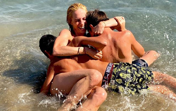 Κάνοντας ένα διάλειμμα από τις επαγγελματικές της υποχρεώσεις, απολαμβάνει τον ήλιο και τη θάλασσα παρέα με τους δύο γιους της. Μάλιστα, είχε γίνει μητέρα στα 24 της και οι γιοι της έχουν μόλις 15 μήνες διαφορά.