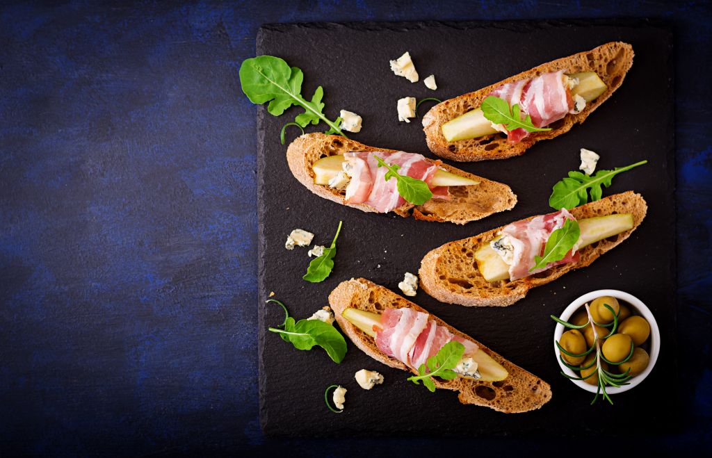 Λιώστε τη ρικότα με ένα πιρούνι και αναμείξτε μέσα της το αλάτι, το πιπέρι, το ελαιόλαδο και το θυμάρι. Συνεχίστε μέχρι το τυρί σας να μαλακώσει. Απλώστε τις φέτες του ψωμιού σε ένα ταψάκι και βάλτε τες σε φούρνο που θα έχετε προθερμάνει στους 200 βαθμούς, για πέντε λεπτά περίπου. Απλώστε το τυρί πάνω στις φέτες του ψωμιού και τοποθετήστε από πάνω μια φέτα προσούτο και δυο πολύ λεπτές φέτες αχλάδι. Γαρνίρετε με λίγο θυμάρι ακόμη και, προαιρετικά, με λίγο πιπέρι.
