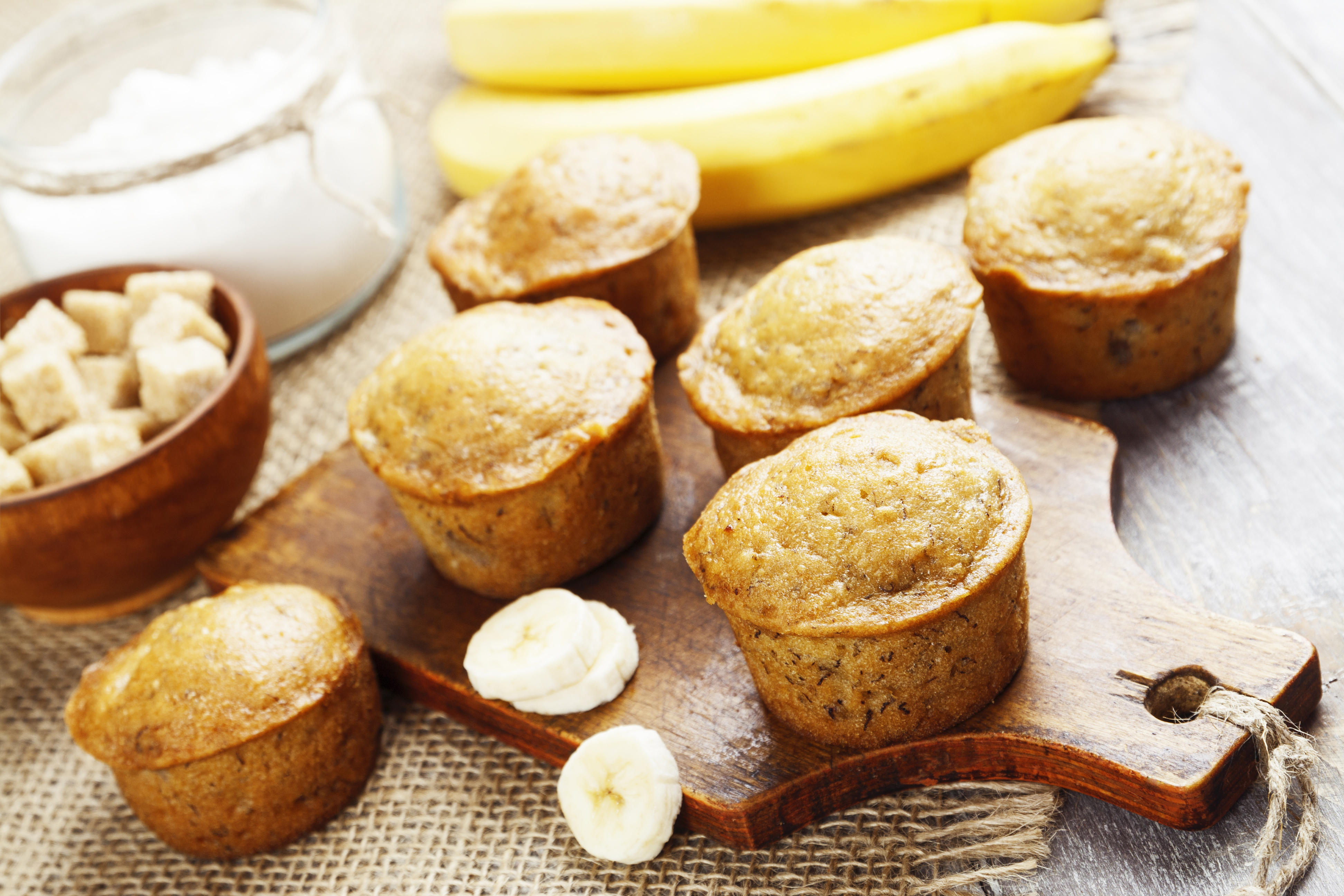 3. Σε ένα άλλο μπολ ανακατέψτε τις μπανάνες, τη ζάχαρη, το αβγό και το λιωμένο βούτυρο. Ρίξτε το μείγμα στο μείγμα με το αλεύρι και ανακατέψτε μέχρι να συνδυαστούν όλα τα υλικά.