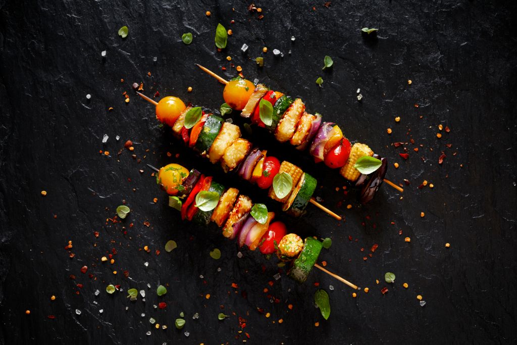 3. Στρώνετε ένα ταψί με λαδόχαρτο και τοποθετείτε τα σουβλάκια. Σε ένα μπολ βάζετε τα υλικά της σάλτσας. Ανακατεύετε καλά και περιχύνετε τα σουβλάκια. Τα ψήνετε στον φούρνο στους 200°C για 10-15 λεπτά περίπου.