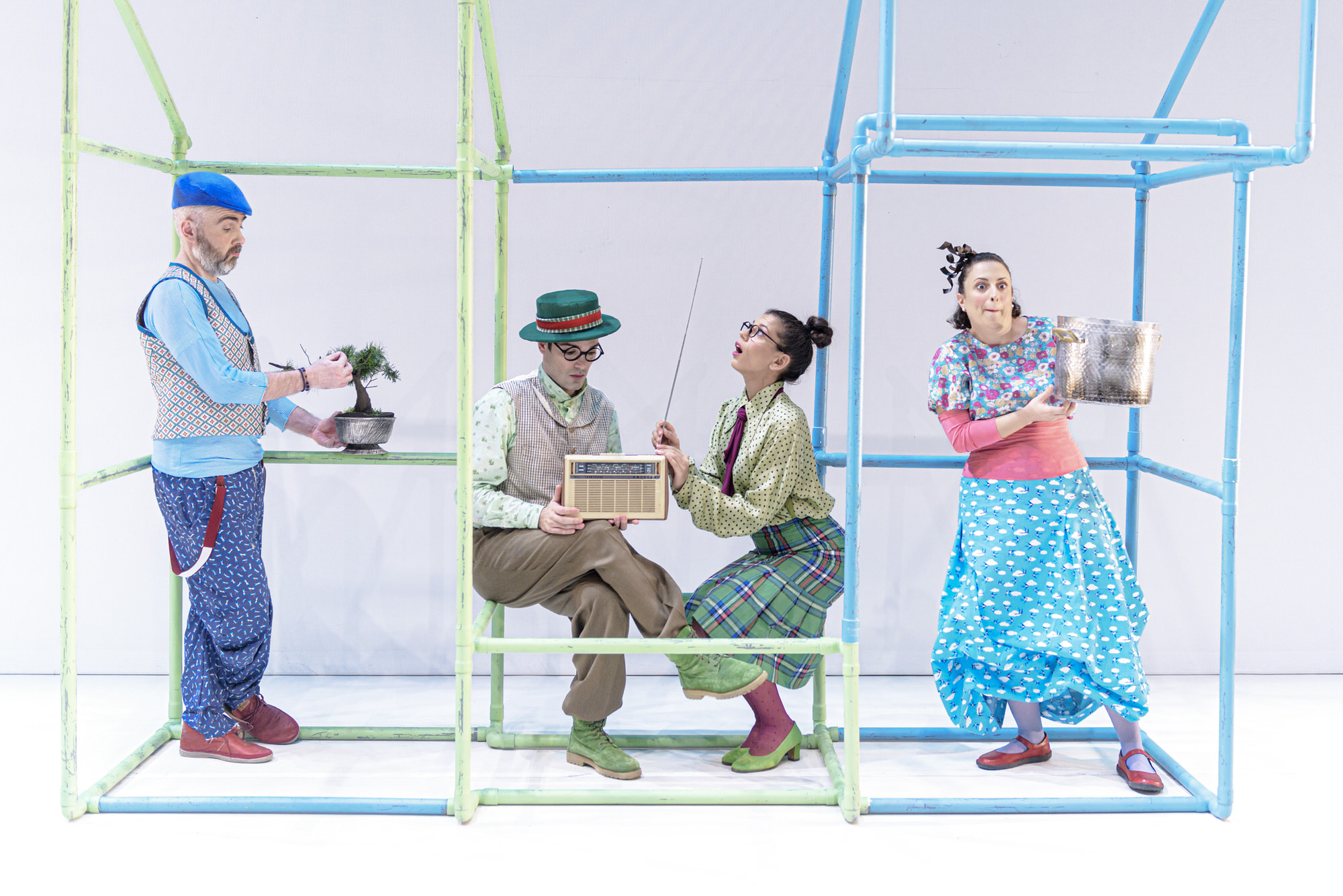 Ο Φοίβος Συμεωνίδης σκηνοθετεί με εφόδια τους κώδικες του βωβού κινηματογράφου και της slapstick κωμωδίας και δημιουργεί χώρο για διάδραση. Οι μικροί θεατές παρακολουθούν μια όμορφη, αστεία και ταυτόχρονα συγκινητική ιστορία που εκτυλίσσεται σε ένα ανατρεπτικό σκηνικό που μοιάζει πολύ με οικοδομή. Καλούνται να συμμετάσχουν ενεργά σε αυτό το «κατασκευαστικό» πανδαιμόνιο, προτείνοντας, στηρίζοντας, χτίζοντας, γκρεμίζοντας, απαντώντας σε ερωτήσεις και συμβουλεύοντας τους ήρωες στις κρίσιμες στιγμές της ιστορίας. Έτσι το έργο λειτουργεί ταυτόχρονα σε δύο παράλληλα επίπεδα, το πραγματολογικό και το συμβολικό, αντιμετωπίζοντας με χιούμορ και παιχνιδιάρικη διάθεση τα μεγάλα ζητήματα της φιλίας, της εμπιστοσύνης, της συνεργασίας, της δημιουργικότητας και της προσπάθειας.
