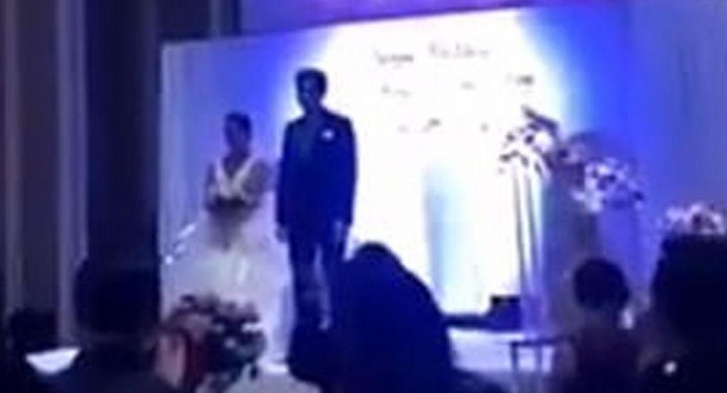 Συγκεκριμένα, σύμφωνα με την βρετανική Daily Mail, κατά τη διάρκεια της δεξίωσης γάμου στην Κίνα, μέσα στην κατάμεστη αίθουσα, ακούστηκε από το μικρόφωνο μια φωνή να αναφέρει «Και τώρα ας δούμε εικόνες από το παρελθόν του ζευγαριού».