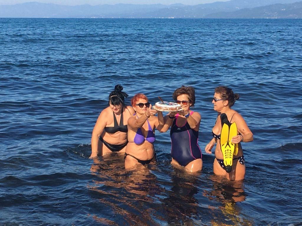 Αυτή τη φορά βέβαια το ραντεβού που είχαν δώσει στην παραλία της Κυπαρισσίας δεν ήταν μόνο για βουτιές. Καθώς έκοψαν την καθιερωμένη πίτα για το καλό του χρόνου, ευχήθηκαν υγεία και χαρές και στη συνέχεια βούτηξαν, κάνοντας το μπάνιο τους στα παγωμένα νερά του Κυπαρισσιακού.