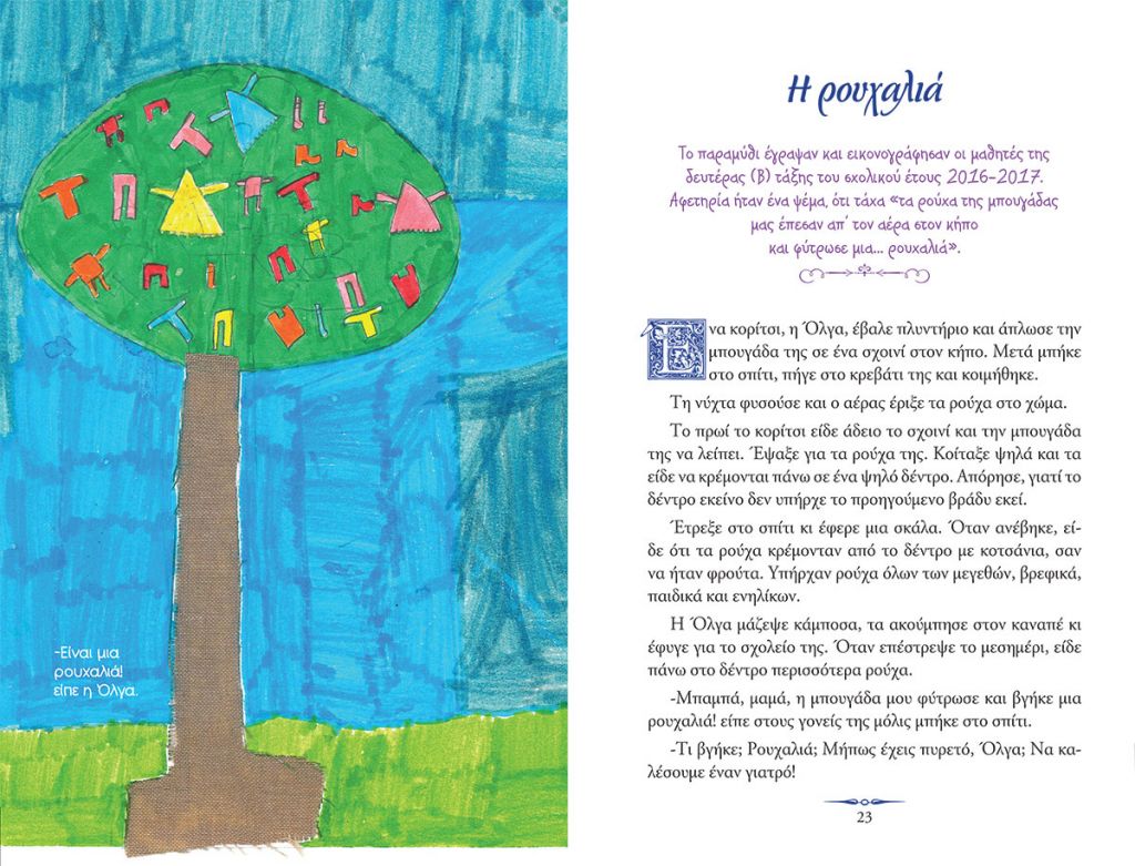 Παραμύθια, θα πείτε. Το βρήκατε! …Παραμύθια που έγραψαν και εικονογράφησαν οι μαθητές του 23ου Δημοτικού Σχολείου Νίκαιας. Πολλά από αυτά διαδραματίζονται στο σχολικό περιβάλλον. Είναι γραμμένα με φαντασία και χιούμορ. Οι μαθητές μάς κάνουν να ευθυμήσουμε, μας συγκινούν, μας διδάσκουν. Τι πιο πρωτότυπο; Παραμύθια για παιδιά, γραμμένα από τα ίδια τα παιδιά. Στο συλλογικό έργο συμμετείχαν μαθητές όλων των τάξεων.