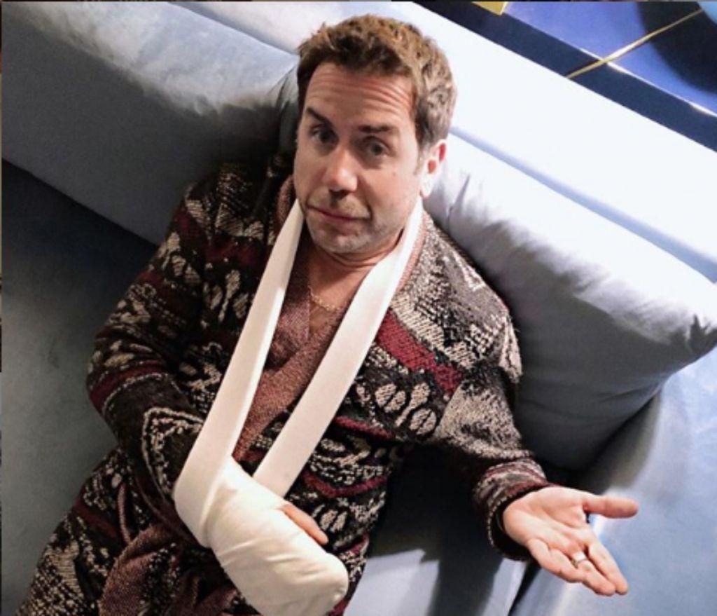 Αυτό διότι ο αγαπημένος τραγουδιστής είχε πριν μερικές ώρες ένα μικρό ατύχημα μέσα στο σπίτι του με αποτέλεσμα να τραυματίσει το χέρι του και να βάλει νάρθηκα.