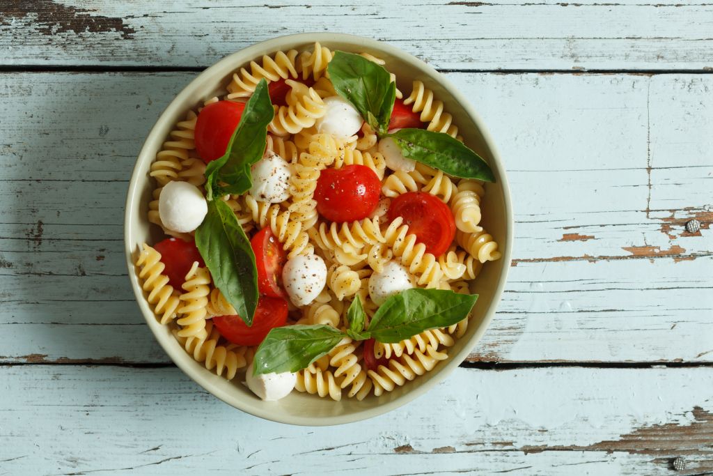 Απολαυστική μακαρονοσαλάτα με ντοματίνια και μοτσαρέλα.