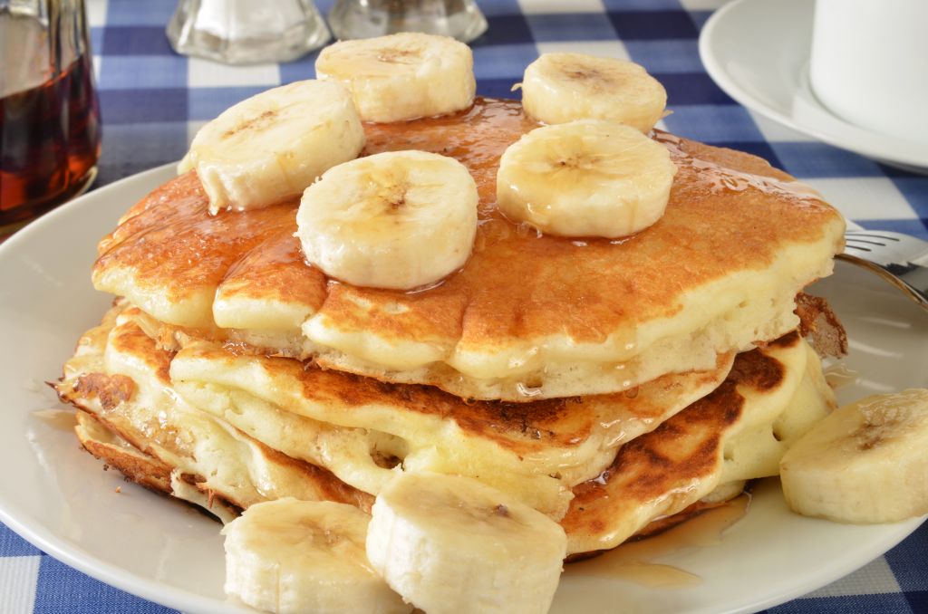 5.Βάλτε λάδι σε αντικολλητικό λάδι να κάψει και ρίξτε κουταλιά – κουταλιά το χυλό με τις μπανάνες.