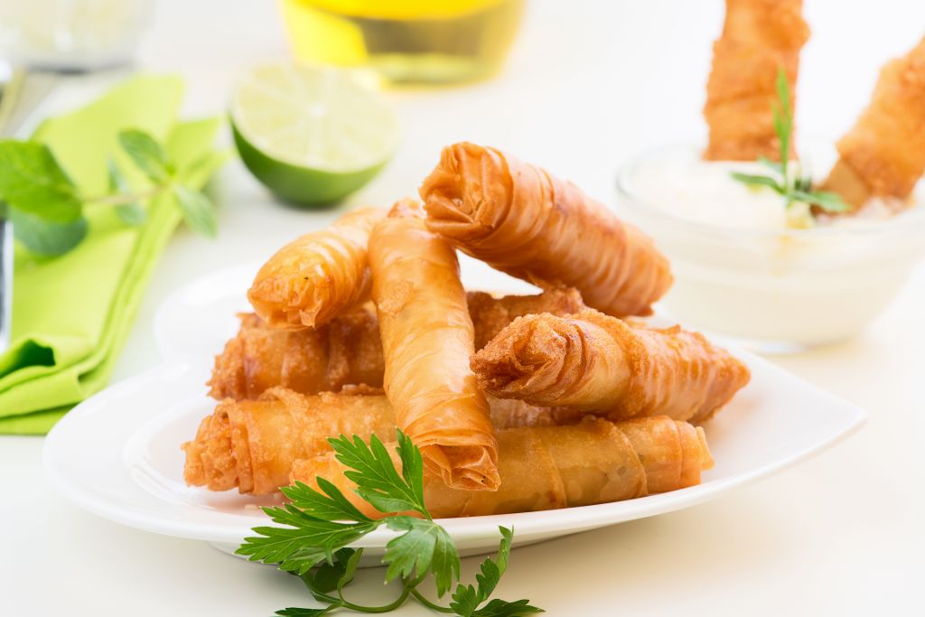 6.Τυλίξτε σε ρολό και κλείστε προσεκτικά τις πλαϊνές πλευρές της φλογέρας για να μην φύγει η γέμιση. Επαναλάβετε μέχρι να τελειώσει το φύλλο και η γέμιση.