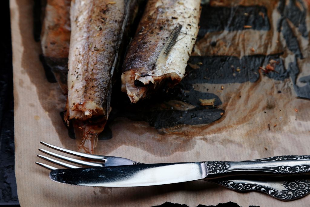 5.Ανακατέψτε για το ζωμό όλα τα υλικά του μαζί και ρίξτε το μείγμα σας σε ένα ταψί. Τοποθετείστε στο ταψί τα ψάρια και αλατίζετε ελαφρά.