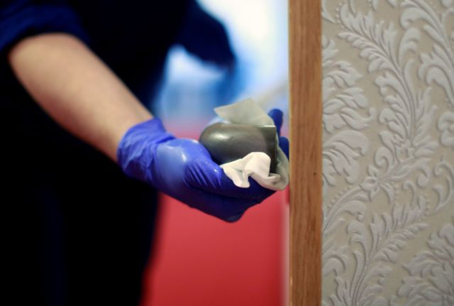 12. Καθαρισμός και απολύμανση επιφανειών και αντικειμένων στο δωμάτιο του ατόμου καθημερινά με κοινό απορρυπαντικό ή σαπούνι, ξέπλυμα και στη συνέχεια απολύμανση με διάλυμα οικιακής χλωρίνης σε αναλογία 1:10.