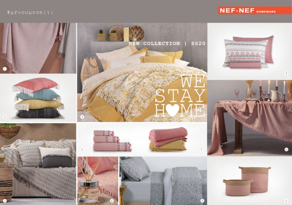 Μένουμε σπίτι. Το φτιάχνουμε όμορφο, άνετο και ξεκούραστο. Με δημιουργικότητα και φαντασία. Με ποιότητα και στυλ. Το γεμίζουμε με τα χρώματα και τα σχέδια της Άνοιξης για να το απολαμβάνουμε κάθε στιγμή. Σχεδιασμένη για τη σύνθεση ενός ξεχωριστού προσωπικού στυλ, η νέα συλλογή NEF–NEF Homeware Spring – Summer 2020, σήμερα περισσότερο από ποτέ, μας εμπνέει να φτιάξουμε το σπίτι μας ακριβώς όπως το θέλουμε!