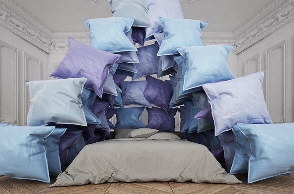 Την περίοδο που το «μείνετε σπίτι» είναι η υπ’ αριθμόν ένα συμβουλή και οδηγία από κυβερνήσεις σε όλον τον πλανήτη, η πυραμίδα από μαξιλάρια του Γάλλου καλλιτέχνη μας πηγαίνει πίσω στις παιδικές μνήμες τότε που χτίζαμε κρησφύγετα.