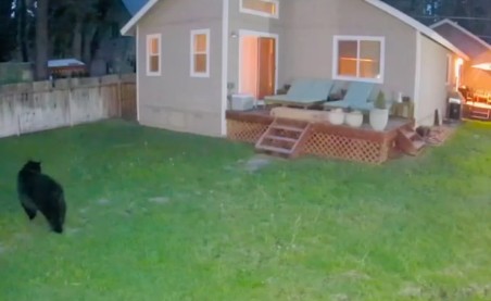 Αργότερα, ήρεμος και υπό την ασφάλεια του σπιτιού, απαθάνατισε το στιγμιότυπο, με την αρκούδα να βολτάρει στην αυλή, και τον ίδιο με την οικογένειά του να παραμένουν κλεισμένοι, αλλά ευδιάθετοι μέσα στο σπίτι τους.