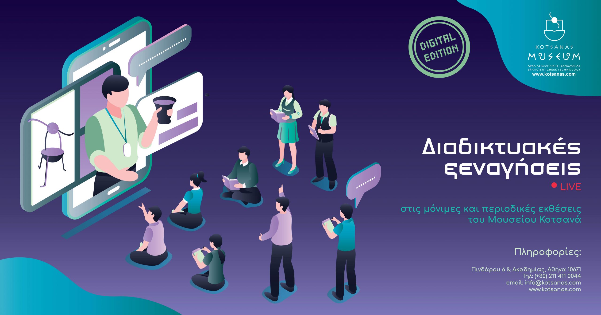 Διανύοντας ξανά μία περίοδο που όλοι καλούμαστε να δείξουμε ατομική και κοινωνική ευθύνη μένοντας στο σπίτι, το Μουσείο Κοτσανά Αρχαίας Ελληνικής Τεχνολογίας (Πινδάρου 6 και Ακαδημίας, Κολωνάκι), μάς καλεί να αξιοποιήσουμε δημιουργικά τον ελεύθερο χρόνο μας και μάς προσκαλεί σε ένα διαδικτυακό ταξίδι εκπαίδευσης και ψυχαγωγίας μέσω διαδικτυακών ξεναγήσεων –live streaming – στις μόνιμες & περιοδικές εκθέσεις του.