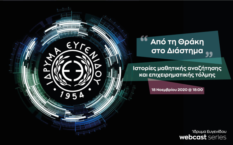Το νέο Webcast του Ιδρύματος Ευγενίδου, θα πραγματοποιηθεί την Τετάρτη 18 Νοεμβρίου 2020, με θέμα «Από τη Θράκη στο Διάστημα: Ιστορίες μαθητικής αναζήτησης και επιχειρηματικής τόλμης». Κατά τη διάρκεια της διαδικτυακής συνάντησης, εκπρόσωποι της επιχειρηματικής και της μαθητικής κοινότητας θα συζητήσουν με τον διευθυντή του Πλανηταρίου, κ. Μάνο Κιτσώνα και τον δημοσιογράφο κ. Πάνο Σάκκα, για τις δυσκολίες και τις νέες ευκαιρίες που προσφέρει η διαστημική έρευνα.