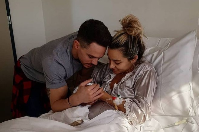 Συγκεκριμένα οι χαρούμενοι γονείς δημοσίευσαν μια φωτογραφία μέσα από το μαιευτήριο στην οποία η μανούλα φαίνεται να κρατά το χέρι τόσο του συζύγου της όσο και της νεογέννητης κορούλας τους και έγραψε: