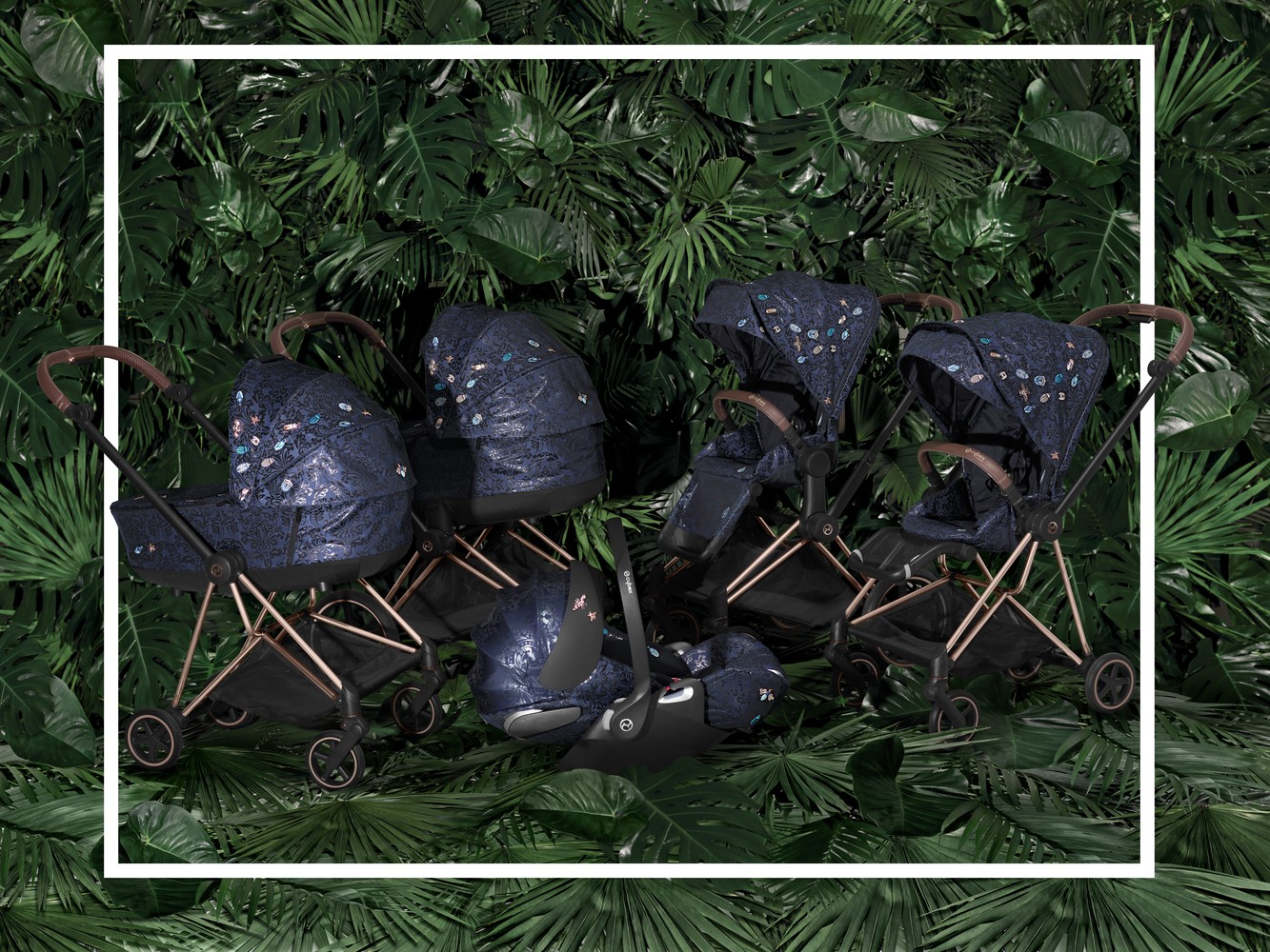 Βρεφικά καθίσματα, καρότσια και πολλά ακόμη από τα προϊόντα της CYBEX, που έχουν διακριθεί για τη μέγιστη ασφάλεια, τον απαράμιλλο σχεδιασμό και την εργονομία που προφέρουν, κερδίζοντας τα βραβεία Mothers & Baby Awards 2020 και χαρίζοντας στην εταιρεία τον τίτλο της Baby Company of the Year και έξι ακόμη σημαντικά βραβεία, στολίζονται με υψηλής ποιότητας ύφασμα ζακάρ σε στυλ μπαρόκ και σε βαθύ μπλε χρώμα. Και πάνω του, πρωταγωνιστεί η απεριόριστη ποικιλία σχημάτων από τον κόσμο των εντόμων, με τα αστραφτερά, σαν πανοπλίες περιβλήματά τους, που έχουν εμπνεύσει πολλές γενιές σχεδιαστών και ειδώλων του στυλ.