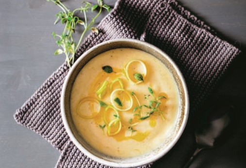 4. Σερβίρετε τη σούπα ζεστή με φρεσκοτριμμένο πιπέρι και γαρνίρετε με τα πράσα που κρατήσατε στην άκρη.