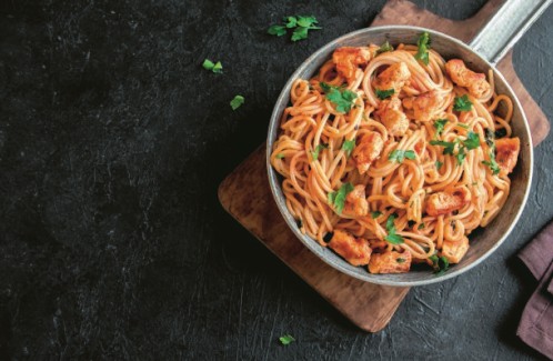 4. Αδειάζετε τα μακαρόνια στο τηγάνι με το κοτόπουλο και τα σερβίρετε ζεστά με τριμμένο Πεκορίνο.