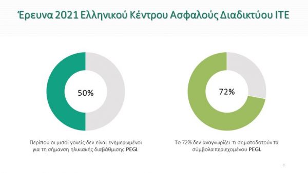 Από την άλλη πλευρά περίπου οι μισοί γονείς δεν είναι ενημερωμένοι για τη σήμανση ηλικιακής διαβάθμισης PEGI και το 72% δεν αναγνωρίζει τι σηματοδοτούν τα σύμβολα περιεχομένου PEGI. Παρόλα αυτά, σχεδόν το σύνολο των ερωτηθέντων θεωρεί ότι αυτές οι σημάνσεις είναι ένα εργαλείο στα χέρια των γονιών και θα ήθελε να γνωρίζει εκ των προτέρων τι πιθανώς επιβλαβές περιεχόμενο περιέχεται στο οπτικοακουστικό υλικό που θα δει το παιδί. Πάντως μόνο το 2% των ερωτηθέντων έχει εισάγει κριτική για ηλικιακή σήμανση ή σήμανση επιβλαβούς περιεχομένου σε δημόσιες βάσεις δεδομένων.