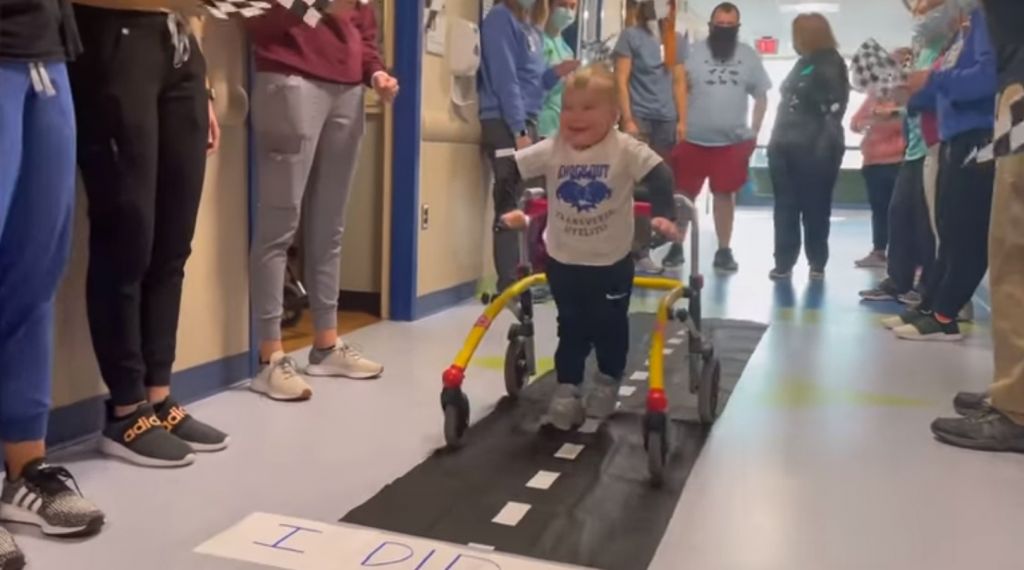 Ένα βίντεο που δημοσιεύτηκε στη σελίδα του νοσοκομείου στο Facebook δείχνει ότι ο μικρούλης έκανε τα πρώτα του βήματα από τότε που έμεινε παράλυτος.
