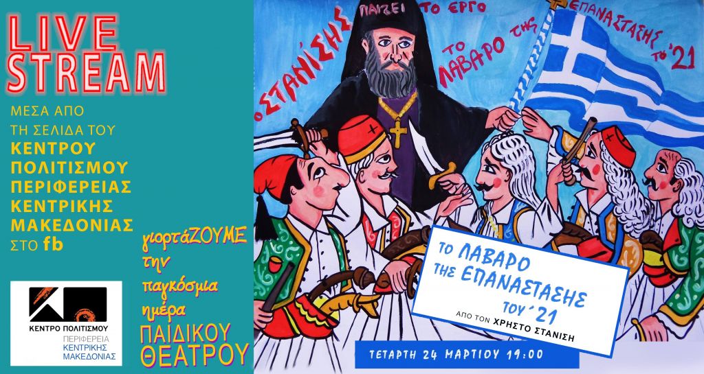 Το Κέντρο Πολιτισμού Περιφέρειας Κεντρικής Μακεδονίας συνεχίζει τις δωρεάν μεταδόσεις του με ένα αφιέρωμα στην Παγκόσμια Ημέρα Παιδικού Θεάτρου (20η Μαρτίου).