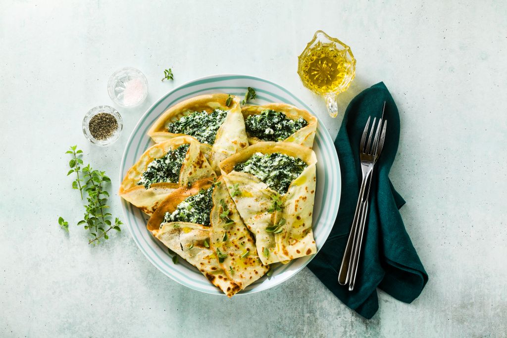 Σήμερα, λιγουρευτήκαμε νόστιμες, αλμυρές κρέπες με σπανάκι και ρικότα, αυτό το χαρακτηριστικό, πλούσιο τυρί που αναβαθμίζει οτιδήποτε στο οποίο προστίθεται.