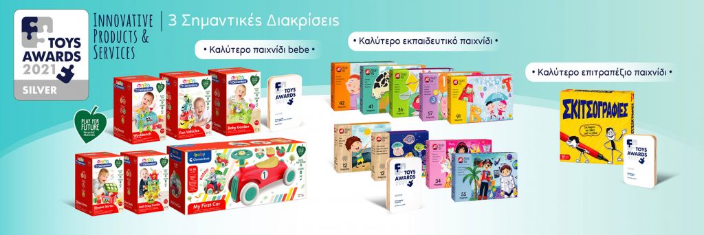 – Kατηγορία: Καλύτερο παιχνίδι bebe, για τη σειρά Play for Future της Βaby Clementoni, από ανακυκλωμένα και ανακυκλώσιμα υλικά.