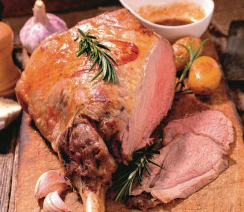 2. Βάζετε στο ταψί το κρασί, πάνω από το μπούτι το δεντρολίβανο, το σκεπάζετε πολύ καλά με λαδόκολλα και αλουμινόχαρτο και ψήνετε για 1½ ώρα σε προθερμασμένο φούρνο στους 180°C.