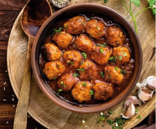 4. Στη συνέχεια, ρίχνετε μέσα τους κεφτέδες και συνεχίζετε το βράσιμο για άλλα 10 λεπτά. Πασπαλίζετε με τριμμένο μαϊντανό και σερβίρετε.
