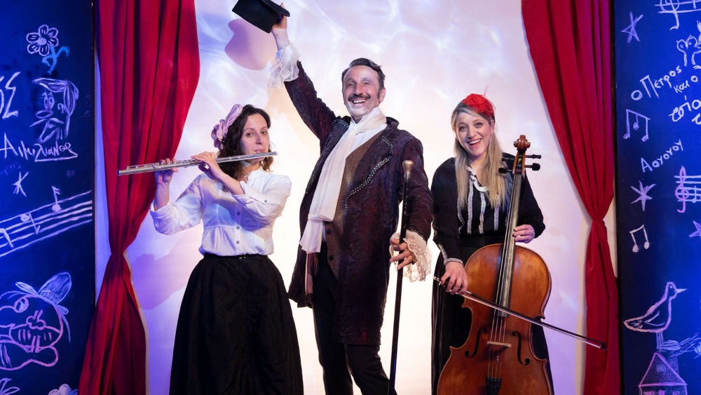 Πιάνο, βιολί, φλάουτο, βιολοντσέλο σαξόφωνο και κρουστά πλέκονται με στοιχεία χοροκίνησης, τραγούδια βασισμένα στις κλασικές μελωδίες του συνθέτη, διαδραστικό παιχνίδι και θέατρο σκιών για να δημιουργήσουν μια διαφορετική θεατρική εκδοχή του κλασικού έργου που δεν περιορίζεται στη ζωντανή εκτέλεση της ορχήστρας με συνοδεία αφήγησης.