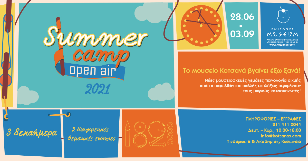 • Το Summer Camp πραγματοποιείται από το «Μουσείο Κοτσανά Αρχαίας Ελληνικής Τεχνολογίας», Πινδάρου 6 & Ακαδημίας, Κολωνάκι, 10671, Αθήνα.