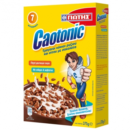 Άλλη μια σοκολατένια ιδέα; Τα Δημητριακά Caotonic της ΓΙΩΤΗΣ, που επίσης είναι σχεδιασμένα για παιδιά και αποτελούνται από τραγανούς κόκκους ρυζιού και σίτου με σοκολάτα, ενώ είναι και αυτά εμπλουτισμένα με ασβέστιο, σίδηρο και βιταμίνες – και αποτελούν πηγή φυτικών ινών.