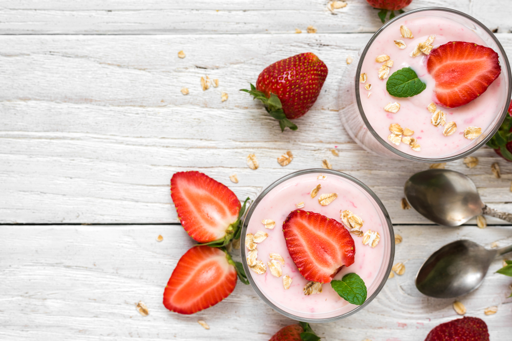 2. Γιαούρτι με μέλι, κομμάτια ροδάκινου και φράουλες