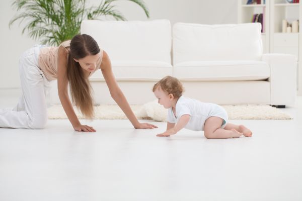 - Ξαπλώστε ανάσκελα στο πάτωμα, τεντωθείτε και ακουμπήστε το μωρό επάνω σας. Σύντομα θα αισθανθεί ασφαλές και θα δοκιμάσει κινήσεις που δεν συνηθίζει ως τώρα, όπως το να σταθεί στα τέσσερα στον κορμό σας για να σας κοιτάξει στα μάτια.