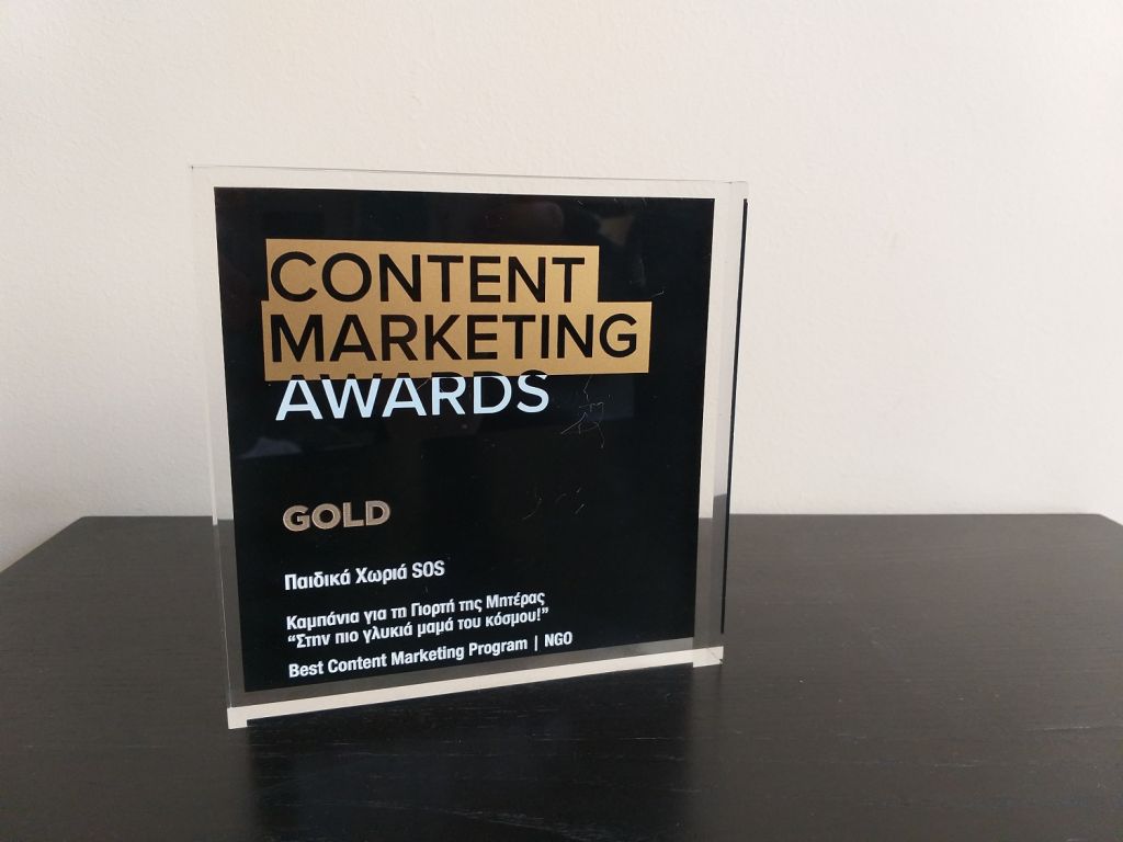 Τα Παιδικά Χωριά SOS απέσπασαν το Gold βραβείο “Best Content Marketing Program | NGO” στα Content Marketing Awards της BOUSSIAS, για την digital καμπάνια «Στην πιο γλυκιά μαμά του κόσμου» που πραγματοποιήθηκε με αφορμή τη Γιορτή της Μητέρας το 2020. Η τελετή απονομής έγινε την Τετάρτη 14 Ιουλίου σε μια ξεχωριστή εκδήλωση στο House 124, τηρώντας όλα τα απαραίτητα μέτρα προστασίας.