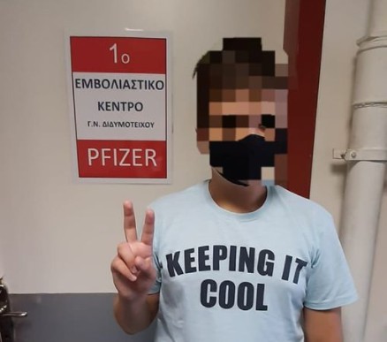 Με ικανοποίηση ο πατέρας του ανέβασε φωτογραφία του γιου του, σε σελίδα κοινωνικής δικτύωσης λέγοντας «1ος (πρώτος) στο εμβολιαστικό κέντρο Διδυμοτείχου , να είσαι και πρώτος στη ζωή σου παλικάρι μου! Καλή ανοσία!»