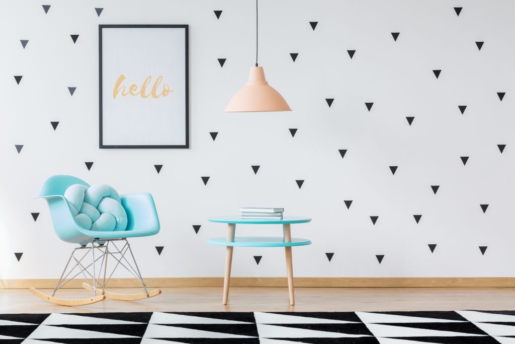Για να τα καταφέρετε, ξεκινήστε αλλάζοντας το χρώμα σε μερικούς από τους τοίχους. Διατηρήστε το λευκό και συνδυάστε το με ένα έντονο χρώμα, όπως στην φωτογραφία και δοκιμάστε να βάψετε τον τοίχο μισό ή διαγώνια ώστε να δημιουργηθεί ένα γεωμετρικό σχήμα.