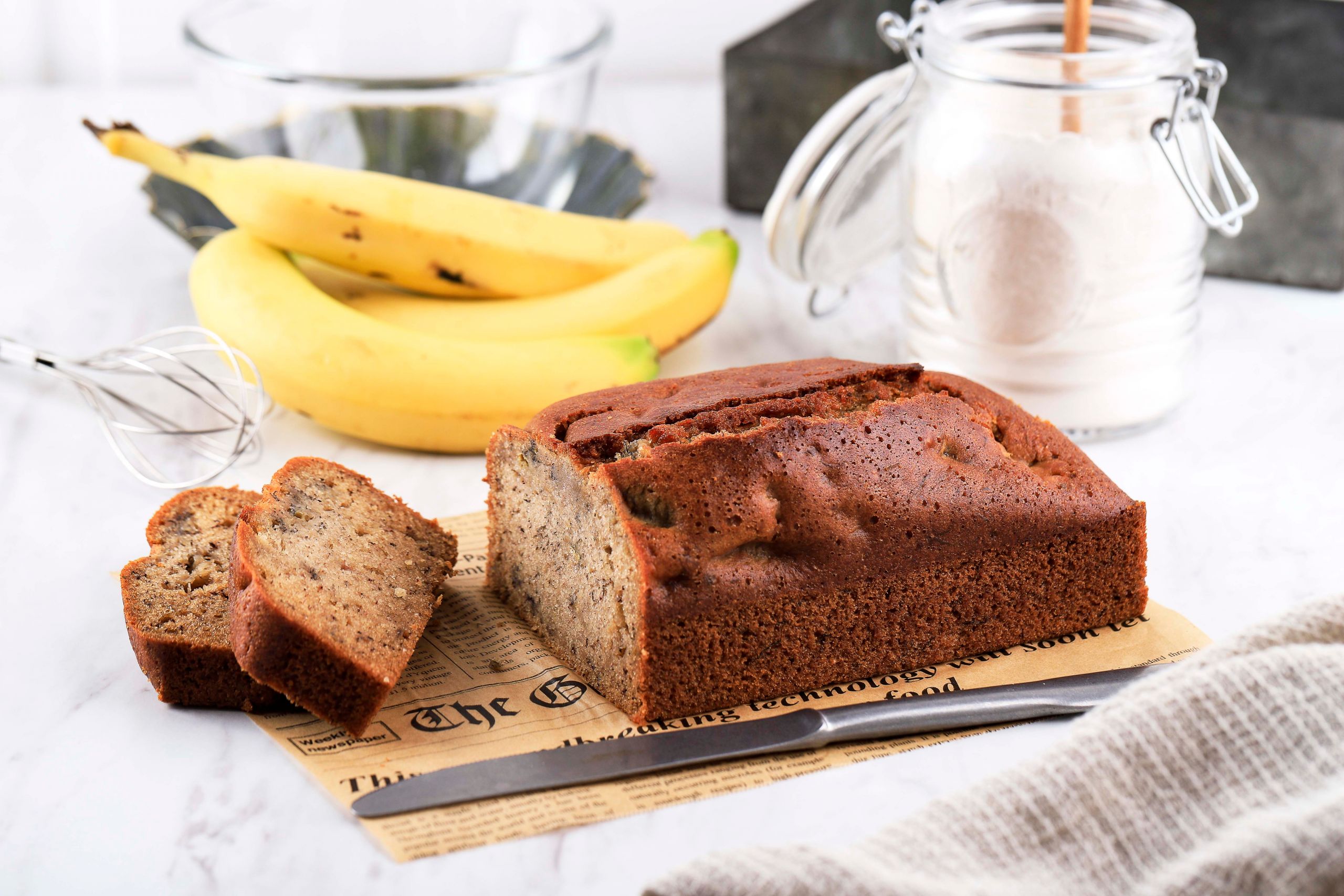 Προθερμαίνετε τον φούρνο στους 180° C και παίρνετε ένα μεγάλο μπολ, στο οποίο χτυπάτε τα αυγά με το ζαχαρούχο γάλα και το βούτυρο μαλακωμένο. Έπειτα προσθέτετε το αλεύρι και ανακατεύετε μέχρι να αναμειχθεί καλά με τα υπόλοιπα υλικά. Λιώνετε τις μπανάνες με ένα πιρούνι και στην συνέχεια τις ρίχνετε μέσα στο μπολ μαζί με την μερέντα και τις σταγόνες κουβερτούρας. Ανακατεύετε ξανά μέχρι το μείγμα να ομογενοποιηθεί. Αδειάζετε το μείγμα σε αντικολλητική φόρμα για κέικ, αφού την αλείψετε με λίγο βούτυρο και ψήνετε στους 170º C για 45 με 50 λεπτά.
