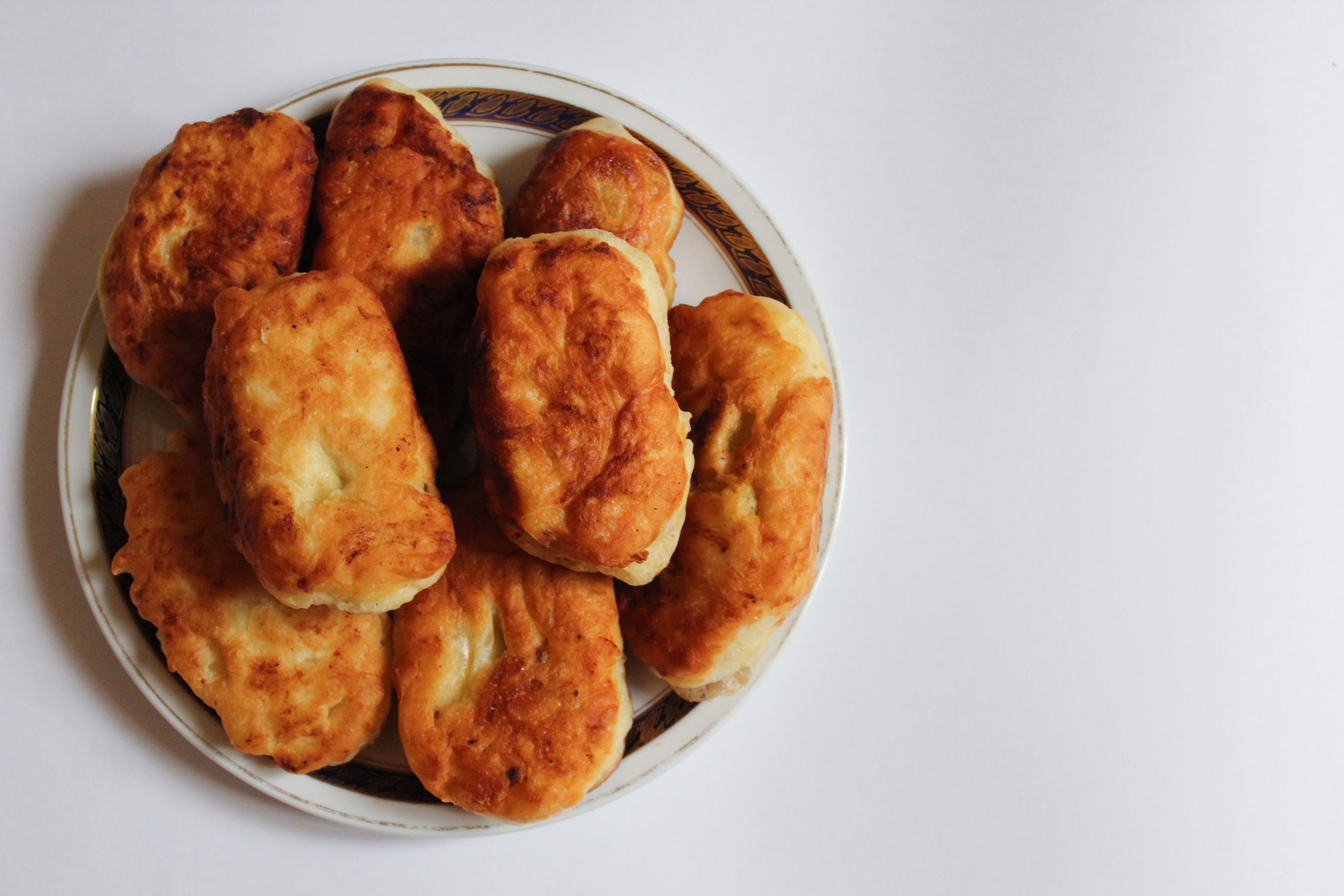 Zυμώνουμε τα υλικά όλα μαζί, αφού διαλύσουμε τη μαγιά στο γάλα. Aφήνουμε τη ζύμη να φουσκώσει και κατόπιν φτιάχνουμε φύλλο πάχους 1 εκ. με τη βοήθεια πλάστη. Kόβουμε με στρογγυλό κουπ-πατ πιτάκια διαμέτρου 5-6 εκ. Bάζουμε λίγη γέμιση (τυριού, κιμά, πατάτας, λουκάνικου κ.ά.). Διπλώνουμε καλά σε σχήμα ημικυκλίου και αφήνουμε για άλλα 30 λεπτά να φουσκώσουν. Tηγανίζουμε σε καυτό λάδι.