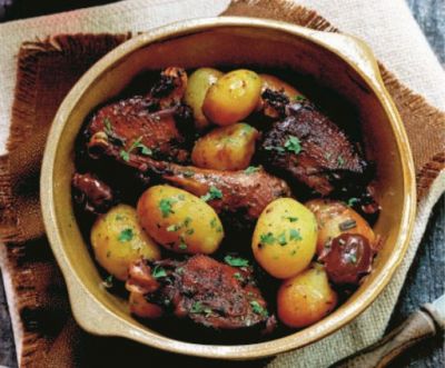 3. Ψήνετε το φαγητό για 1,5 ώρα περίπου σε καλά προθερμασμένο φούρνο στους 200 βαθμούς C, μέχρι να μαλακώσουν καλά οι πατάτες και να μείνουν με το λάδι τους.