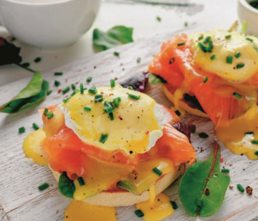 6 Φρυγανίζετε το ψωμί και βάζετε από 2 φέτες σε ένα πιάτο, από πάνω στρώνετε μία φέτα μαρούλι, μία φέτα προσούτο ή σολομό και από μία φέτα αβοκάντο. Βάζετε και από ένα αβγό σε κάθε φέτα, περιχύνετε με τη σάλτσα, γαρνίρετε με το κρεμμυδάκι και σερβίρετε.