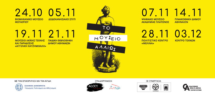 «Το μουσείο αλλιώς» θα πραγματοποιηθεί στο Βιομηχανικό Μουσείο Φωταερίου της Τεχνόπολης και στα παρακάτω μουσεία και πολιτιστικούς χώρους του ΟΠΑΝΔΑ: Δωδεκανησιακό Σπίτι, Κέντρο Τεχνών, Μουσείο Λαϊκής Τέχνης και Παράδοσης «Αγγελική Χατζημιχάλη», Παιδική Βιβλιοθήκη Δήμου Αθηναίων, Πινακοθήκη Δήμου Αθηναίων, Πολιτιστικό Κέντρο «Μελίνα», Ψηφιακό Μουσείο Ακαδημίας Πλάτωνος.