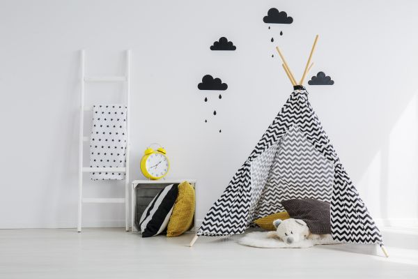 - Μπορείτε να φτιάξετε τη σκηνή με οποιοδήποτε υλικό προτιμάτε, όμως αν θέλετε να έχετε ένα αποτέλεσμα που θα… επιβιώσει των παιδικών παιχνιδιών, μην υποτιμήσετε την αξία ενός ανθεκτικού υφάσματος.