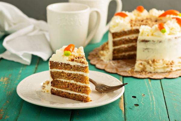 Για το γλάσο χτυπήστε το βούτυρο και τη ζάχαρη μαζί μέχρι να δημιουργήσετε ένα λείο μείγμα. Προσθέστε το μισό τυρί κρέμα και χτυπήστε και πάλι, έπειτα προσθέστε και το υπόλοιπο και επαναλάβετε. Αφαιρέστε τα κέικ από τα φορμάκια, αλείψτε το μισό γλάσο στο ένα από τα δύο και ενώστε τα. Απλώστε το υπόλοιπο γλάσο στην κορυφή του κέικ και γαρνίρετε με τα υπόλοιπα καρύδια.