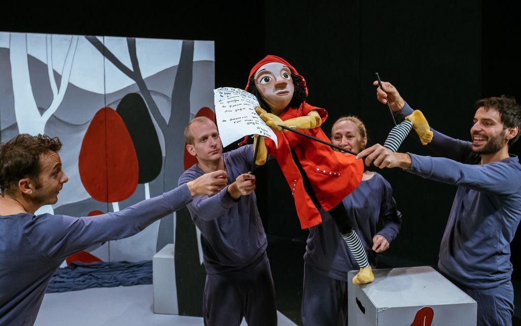 Μέσα σε κάθε παραμύθι ζει μια ερώτηση. Και οι ερωτήσεις που παραμένουν διαχρονικές, σηματοδοτούν και την αξία των παραμυθιών που τις έθεσαν. Το παραμύθι της Κοκκινοσκουφίτσας έχει τις ρίζες της σε ευρωπαϊκά λαϊκά παραμύθια της Βόρειας και Κεντρικής Ευρώπης. Υπολογίζεται ότι συναντώνται τουλάχιστον 70 παραλλαγές της ιστορίας ανά τον κόσμο. Με αναφορές στον Σαρλ Περρώ, τους αδερφούς Γκριμ, τον ιστορικό Άντριου Λάνγκ, τον συγγραφέα Έγκμπερτ της Λιέγης, η Κοκκινοσκουφίτσα στο δάσος των παραμυθιών, σε απόδοση και σκηνοθεσία Έλενας Μαυρίδου, είναι μια παράσταση με πρωταγωνιστές τις θεατρικές μάσκες και τις μαριονέτες. Τέσσερις ηθοποιοί επί σκηνής ενσαρκώνουν όλους τους ήρωες του παραμυθιού, ενώ όλοι μαζί σαν κουκλοπαίχτες ερμηνεύουν την Κοκκινοσκουφίτσα, καθώς χειρίζονται μια μεγάλη κούκλα τύπου Bunraku.