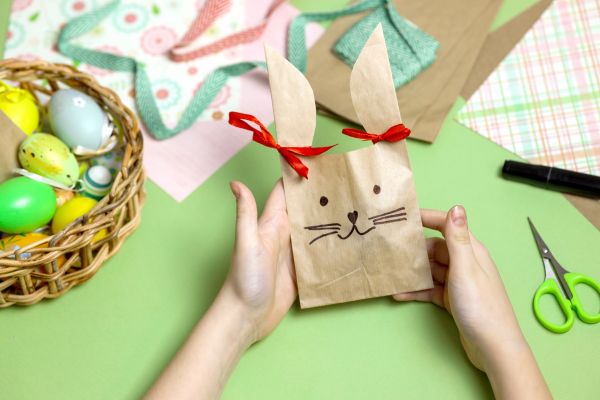 Κολλάμε στο πίσω μέρος της σακούλας το βαμβάκι ή το πομ πομ για να δημιουργήσουμε την ουρά.